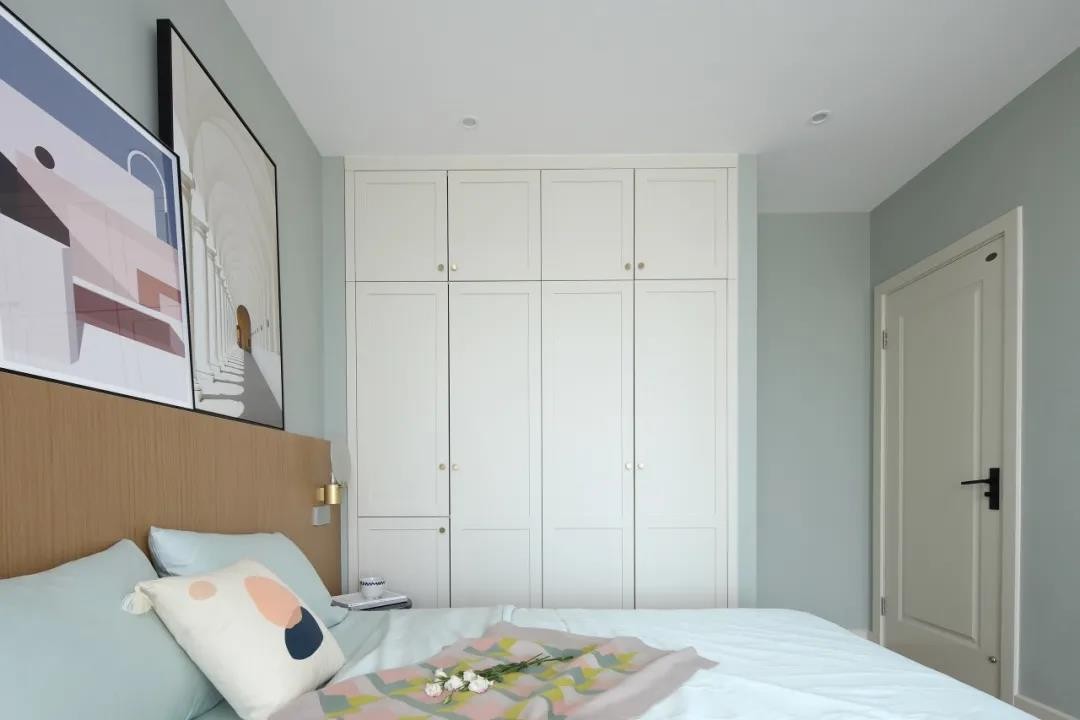 象牙白的衣柜與房門,在簡(jiǎn)約自然的空間下,也是顯得更加溫情優(yōu)雅。